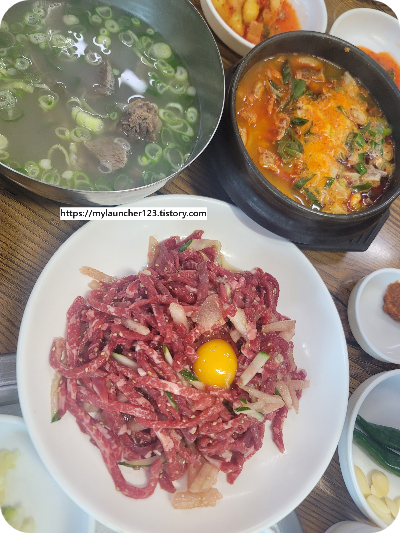 : 아침 겸 점심은 비치클리프에서 분식으로 먹었고, 저녁으로 꼭 가고 싶었던 '도치돌가든'을 갔습니다. 제주 대표 현지인 맛집! 앉아서 먹고 있으면 제주도 사투리 엄청 들려요! 여긴 정말 육회는 무조건 드셔야 합니다! 저 한 접시가 3만 원인데 진짜 진짜 양 많고 정말 신선하고 맛있어요! 그리고 제가 내장탕을 안 먹는데, 유일하게 여기 내장탕만 먹습니다. 그 이유인즉슨 비린내가 없고 깨끗하고 신선한 내장이 정말 듬뿍 들어가 있어요. 국물이 정말 예술입니다. 그리고 양지탕(갈비탕)은 아이 거! 고기 정말 부드럽고 국 간도 딱 좋아서 아이들 밥 말아먹기 딱이에요. 한 끼 든든한 식사가 가능한 곳입니다. 애월, 한림 쪽에 식사 동선 짜실 때 도치돌 가든 꼭 넣으세요!